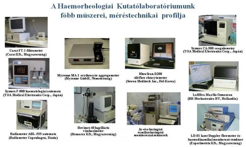 - Haemorheologiai módszerek (viszkozimetria, filtrometria, slit-flow és rotációs ektacytometria, ozmotikus gradiens ektacytometria, fény transzmissziós aggregometria) - Haemorheologiai Kutatólaboratórium